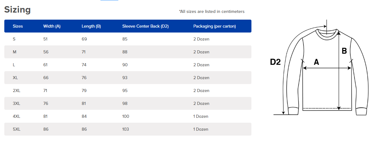 • Some colours available in 3XL, 4XL, 5XL